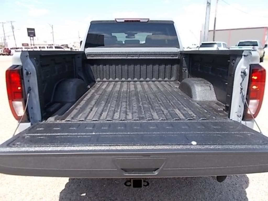 10-Speed Automatic, 4WD, Jet Black Vinyl. 1SA Pro Safety Plus Package (Auto-Dimming Inside Rear-View Mirror, Lane Change Alert w/Side Blind Zone Alert, Perimeter Lighting, Power-Adjustable Black Outside Mirrors, Rear Cross Traffic Alert, and Rear Parking Assist), Convenience Package (Deep-Tinted Glass, Electric Rear-Window Defogger, EZ Lift Power Lock & Release Tailgate, LED Cargo Area Lighting, Outside Power-Adjustable Black Mirrors, and Steering Wheel-Mounted Cruise Control), Preferred Equipment Group 1SA (2 Charge/Data USB Ports, 2-Speed Electronic Shift Transfer Case, Chrome Grille w/Flat Black Grille Insert Bars, OnStar & GMC Connected Services Capable, Push Button Start, Remote Keyless Entry, Solar Absorbing Tinted Glass, and Wireless Phone Projection), Suspension Package, X31 Off-Road Package (Hill Descent Control and Off-Road Suspension), 10-Speed Automatic, 4WD, Jet Black Vinyl, 120-Volt Bed Mounted Power Outlet, 120-Volt Instrument Panel Power Outlet, 17" Steel Wheels, 220-Amp Alternator, 3.42 Axle Ratio, 3.73 Rear Axle Ratio, 4-Way Manual Driver Seat Adjuster, 4-Way Manual Passenger Seat Adjuster, 4-Wheel Disc Brakes, 5th Wheel & Gooseneck Trailer Wiring Provisions, 6 Speakers, 6-Speaker Audio System Feature, 6" Rectangular Black Tubular Assist Steps (LPO), ABS brakes, Air Conditioning, AM/FM radio, Auto High-beam Headlights, Automatic Emergency Braking, Brake assist, Buckle to Drive, Bumpers: chrome, Compass, Delay-off headlights, Driver door bin, Dual front impact airbags, Dual front side impact airbags, Electronic Stability Control, Engine Block Heater, Exhaust Brake, Following Distance Indicator, Forward Collision Alert, Front 40/20/40 Split-Bench Seats, Front anti-roll bar, Front Center Armrest w/Storage, Front License Plate Kit, Front Pedestrian Braking, Front reading lights, Front wheel independent suspension, Fully automatic headlights, Heavy-Duty 80 Amp Battery, Illuminated entry, Integrated Trailer Brake Controller, IntelliBeam Automatic High Beam On/Off, Lane Departure Warning System, LED Smoked Amber Roof Marker Lamps, Low tire pressure warning, Occupant sensing airbag, Outside temperature display, Overhead airbag, Overhead console, Panic alarm, Passenger door bin, Passenger vanity mirror, Pickup Box, Power steering, Power windows, Radio: AM/FM w/GMC Infotainment System, Rear reading lights, Rear step bumper, Remote keyless entry, SiriusXM, Split folding rear seat, Spray-On Bedliner, Tachometer, Tilt steering wheel, Traction control, Trip computer, Variably intermittent wipers, Vinyl Seat Trim, Voltmeter, and Winter Grille Cover.