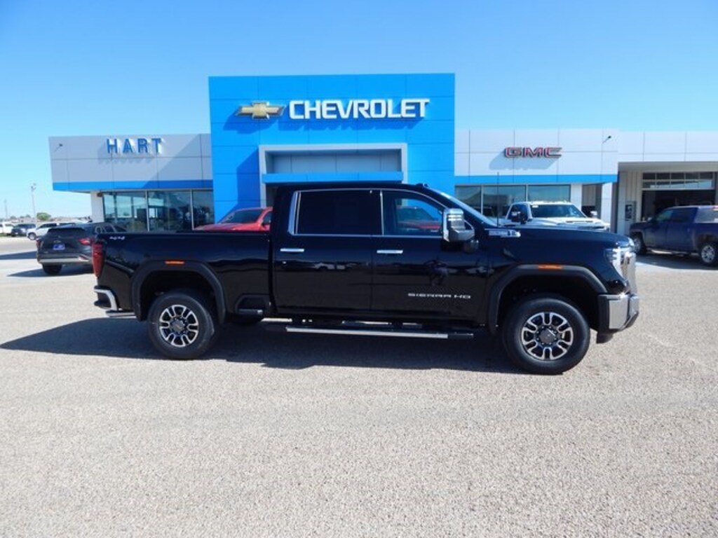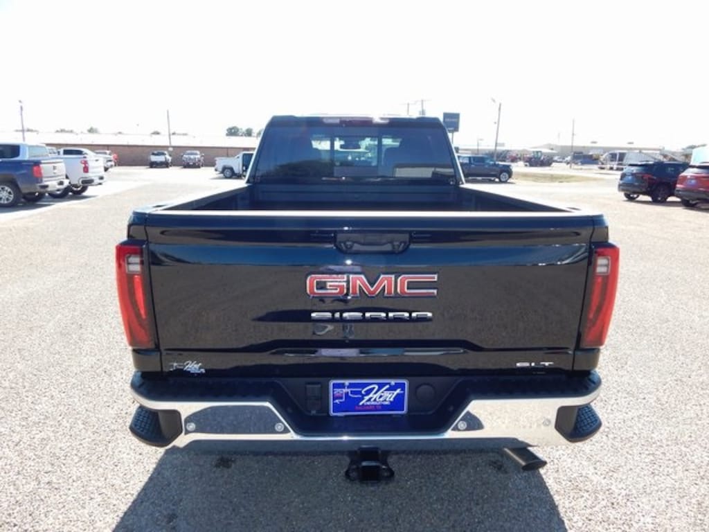 10-Speed Automatic, 4WD, Black Leather. Gooseneck/5th Wheel Prep Package (Spray-On Pickup Bedliner w/GMC Logo), Hitch Package (LPO), Preferred Equipment Group 4SA (120-Volt Bed Mounted Power Outlet, 120-Volt Instrument Panel Power Outlet, 2 Charge-Only Rear USB Ports, 2 Charge/Data USB Ports, 2-Speed Active Transfer Case, 6-Speaker Audio System Feature, Chrome Surround Grille w/Chrome Insert Bars, Deep-Tinted Glass, Electric Rear-Window Defogger, Front Rain-Sensing Wipers, Heated Driver & Front Outboard Passenger Seats, Keyless Open & Start, LED Cargo Area Lighting, Manual Tilt-Wheel/Telescoping Steering Column, OnStar Services Capable, Power Front Passenger Windows w/Express Up/Down, Push Button Start, Rear Wheelhouse Liners, Remote Vehicle Starter System, SiriusXM w/360L Trial Subscription, Steering Wheel Audio Controls, Unauthorized Entry Theft-Deterrent System, and Wireless Phone Projection), Sierra HD Pro Safety Plus Package (Bed View Camera w/2 Trailer Camera Provisions, HD Rear Vision Camera Delete, HD Surround Vision, Rear Cross Traffic Alert, Safety Alert Seat, Trailer Cam Provisions & Trailer Viewing Software, Trailer Side Blind Zone Alert, and Ultrasonic Front & Rear Park Assist), SLT Convenience Package (2 Charge/Data USB Ports Inside Center Console, Bose Premium 7-Speaker Sound System, Floor-Mounted Center Console, Front Bucket Seats, LED Smoked Amber Roof Marker Lamps, Ventilated Driver & Front Passenger Seats, and Wireless Charging), SLT Preferred Package (Adaptive Cruise Control, Heated 2nd Row Outboard Seats, Power Sliding Rear Window w/Defogger, and Universal Home Remote), SLT Premium Package (6" Rectangular Chromed Tubular Assist Steps), Suspension Package, 10-Speed Automatic, 4WD, Black Leather, 10-Way Power Driver Seat Adjuster w/Lumbar, 10-Way Power Passenger Seat Adjuster w/Lumbar, 18" Machined Aluminum Wheels, 220-Amp Alternator, 3.73 Rear Axle Ratio, 4-Wheel Disc Brakes, 6 Speakers, ABS brakes, Air Conditioning, All-Weather Floor Liners (LPO), Alloy wheels, AM/FM radio: SiriusXM with 360L, Apple CarPlay/Android Auto, Auto High-beam Headlights, Auto-dimming door mirrors, Auto-dimming Rear-View mirror, Automatic Emergency Braking, Automatic temperature control, Brake assist, Buckle to Drive, Bumpers: chrome, Compass, Delay-off headlights, Driver door bin, Driver Memory, Driver vanity mirror, Dual front impact airbags, Dual front side impact airbags, Electronic Stability Control, Emergency communication system: OnStar, Engine Block Heater, Following Distance Indicator, Forward Collision Alert, Front 40/20/40 Split-Bench Seats, Front anti-roll bar, Front Center Armrest w/Storage, Front dual zone A/C, Front fog lights, Front License Plate Kit, Front Pedestrian Braking, Front reading lights, Front wheel independent suspension, Fully automatic headlights, Heated door mirrors, Heated front seats, Heated steering wheel, Heavy-Duty 80 Amp Battery, Hitch Guidance w/Hitch View, Illuminated entry, In-Vehicle Trailering System App, IntelliBeam Automatic High Beam On/Off, Lane Departure Warning System, Low tire pressure warning, Memory seat, Occupant sensing airbag, Outside temperature display, Overhead airbag, Overhead console, Panic alarm, Passenger door bin, Passenger vanity mirror, Perf Leather-Appointed Front Outboard Seat Trim, Pickup Box, Power door mirrors, Power driver seat, Power passenger seat, Power steering, Power windows, Radio: AM/FM w/Premium GMC Infotainment System, Rain sensing wipers, Rear reading lights, Rear seat center armrest, Rear step bumper, Rear window defroster, Remote keyless entry, Security system, Speed control, Speed-sensing steering, Split folding rear seat, Steering wheel mounted audio controls, Tachometer, Telescoping steering wheel, Tilt steering wheel, Traction control, Trip computer, Turn signal indicator mirrors, Variably intermittent wipers, and Voltmeter.